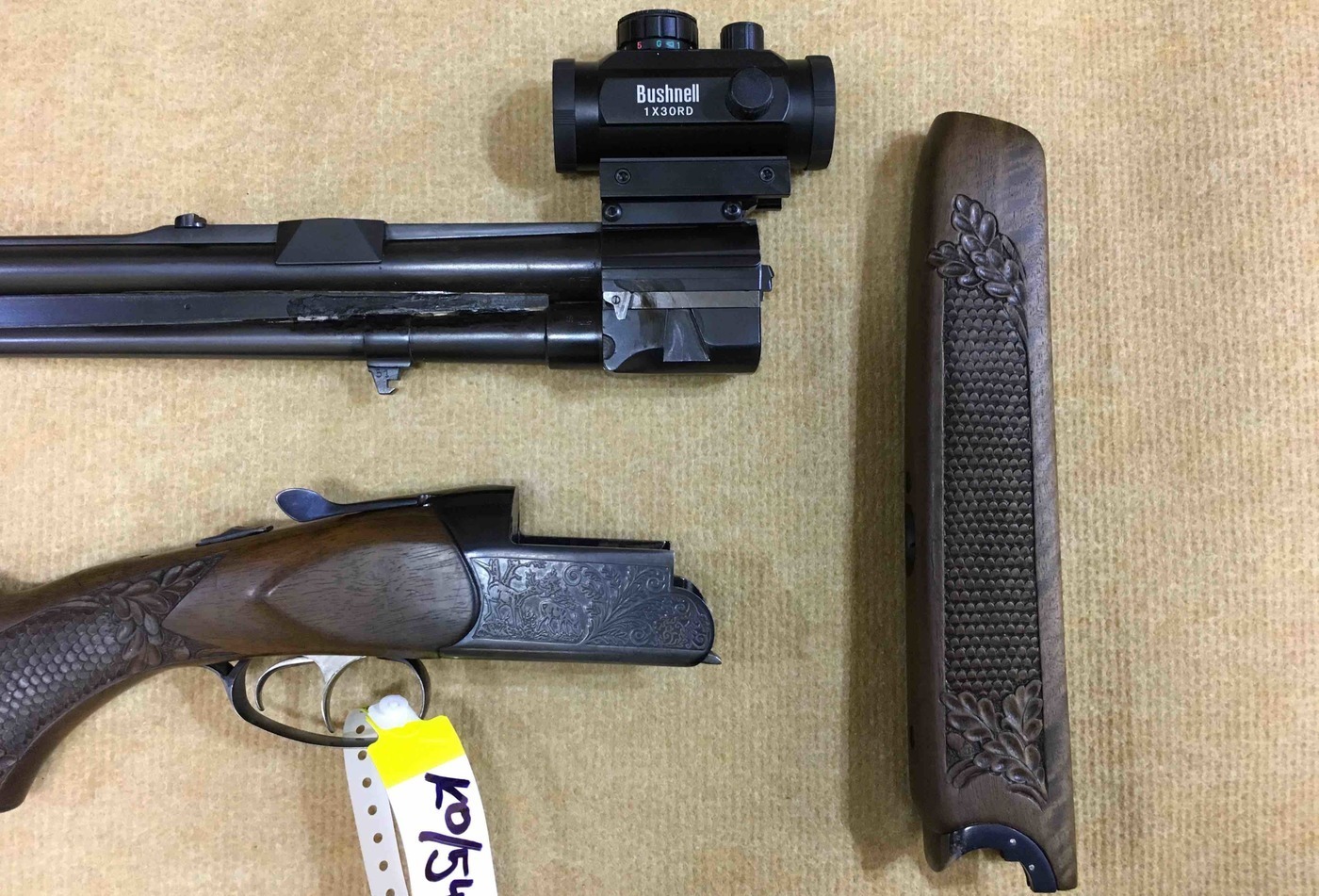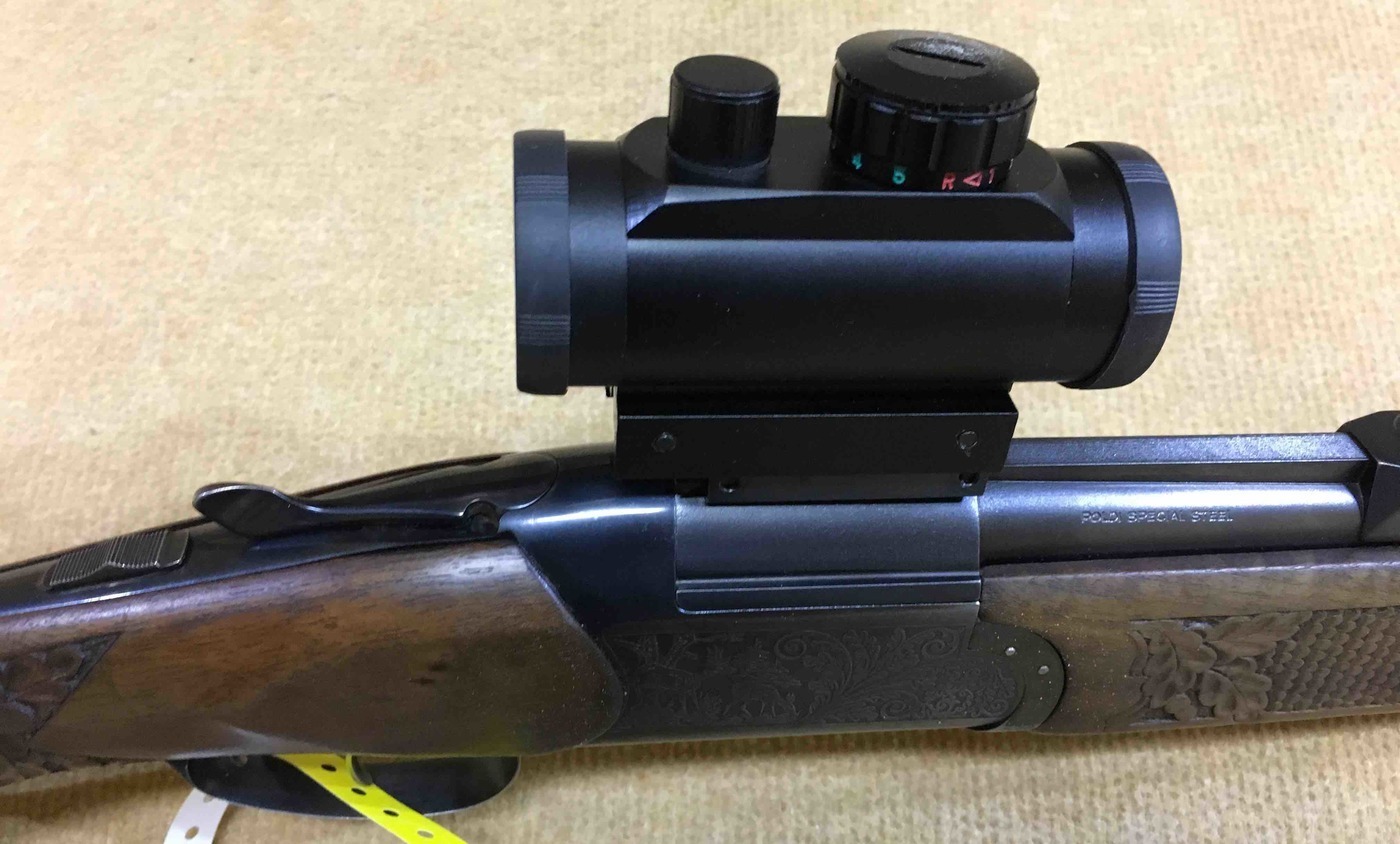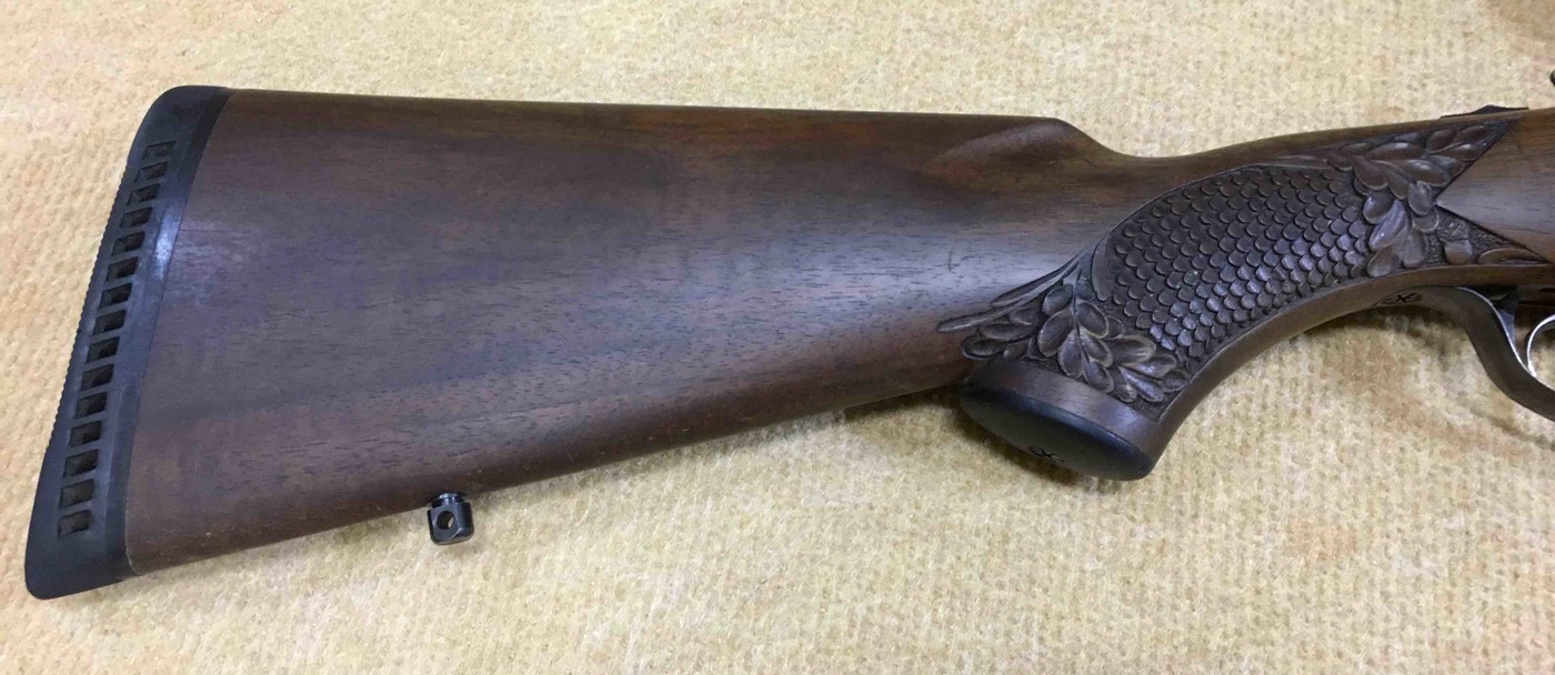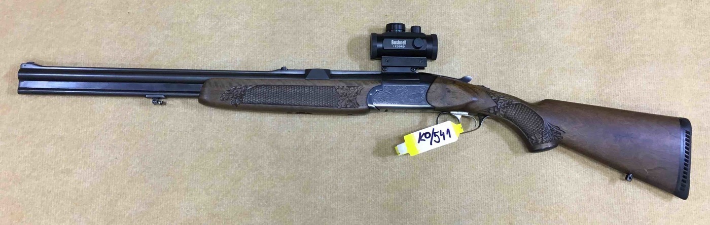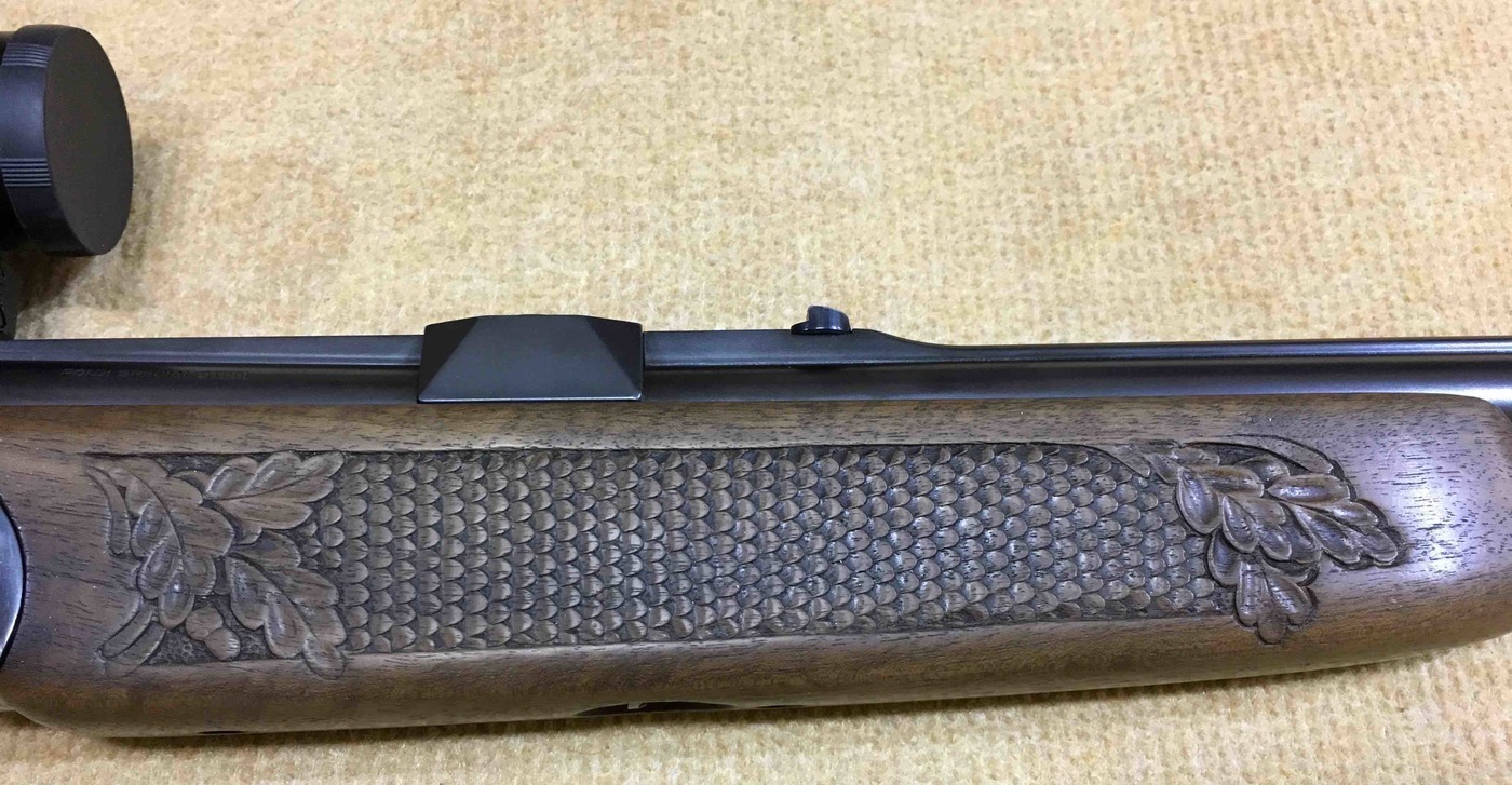 Iné: Guľobroková kozlica vo vynikajúcom stave. Pažba tmavej farby s elegantnou rezbou na pištoľovej rukoväti a aj podpažbí v tvare rybej šupiny s dubovými lístkami. Na zbraň možno použiť dva druhy montažií a to otočnú montáž a aj nasuvnú montáž. Guľobrok je vybavený napinačikom.